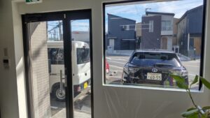 フィルムは室内側 カッテイングシートは室外側から貼ります