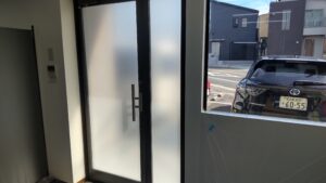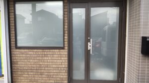 日進市のNクリニック様の入口扉にプライバシーフィルム(サンゲツ スチーム80)を施工させて頂きました。