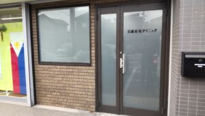 それから入口にクリニック名のカッテイングシートを作成、施工させて頂きました。