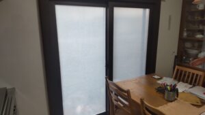 名古屋市緑区の一戸建て住宅M様邸のダイニング横の掃き出し窓、お子様部屋の腰高窓にプライバシーフィルムを施工させて頂きました。 それぞれの窓、外からの視線が気になるというお悩みです。
