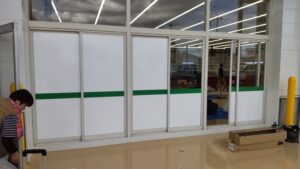 今回は いつもお世話になっている元請業者Iさんからのご依頼で 三重県鈴鹿市まで改装中の某食料品スーパーのシート張りの施工をさせて頂きました。